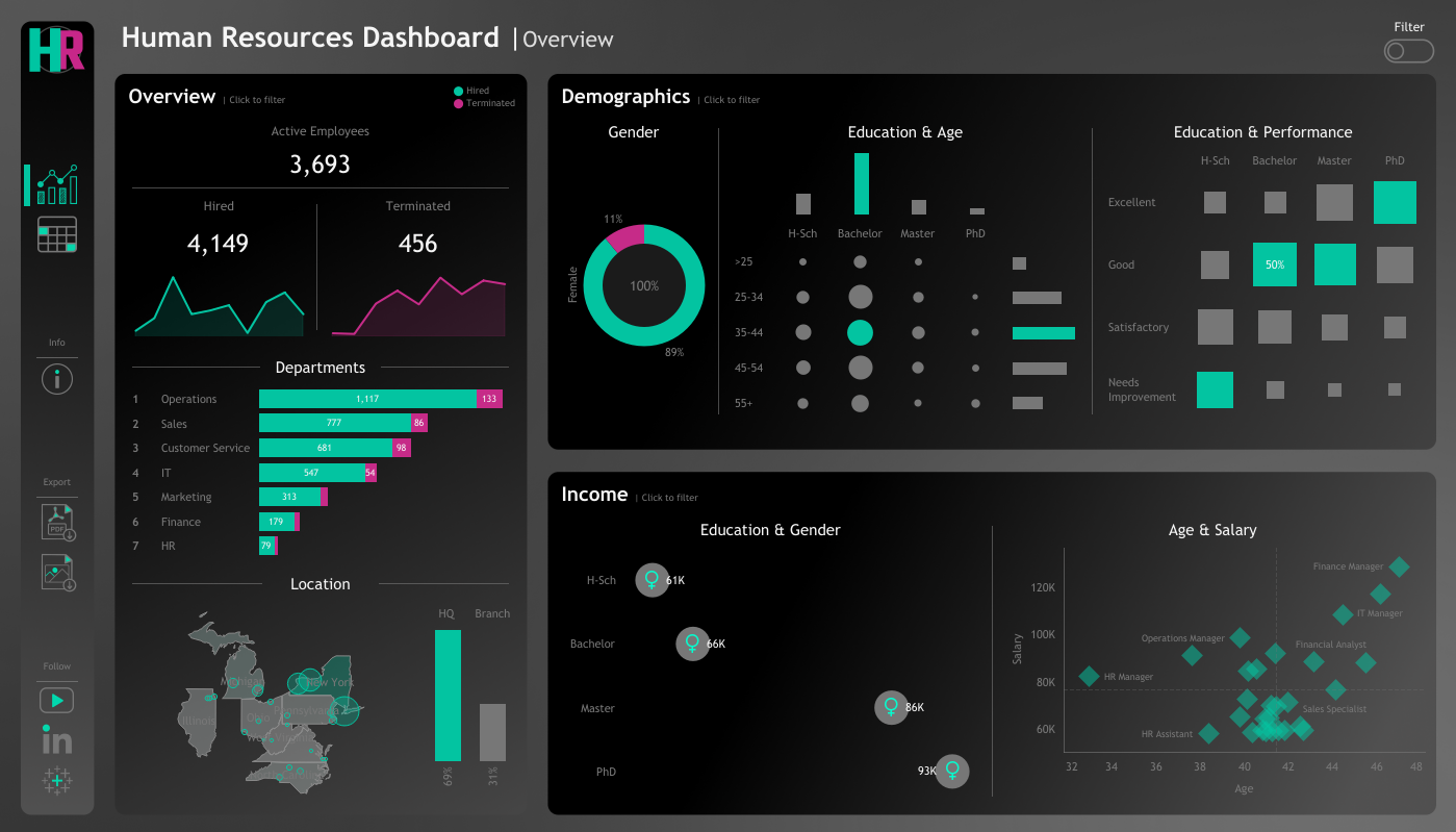 Developed an interactive HR Dashboard using Python, SQL, and Tableau to analyze hiring trends, employee performance, and salary distribution. Processed HR data with Pandas and SQL, ensuring accuracy. Designed KPI-driven Tableau visualizations, enabling data-driven HR decisions. Conducted EDA to uncover workforce patterns and optimize HR strategies.