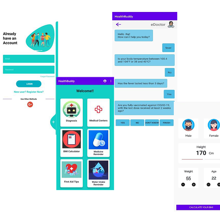 Developed HealthBuddy using Python, Android, PyTorch, and trained an AI model to enhance user health management. Features include water intake & medicine reminders, hospital locator, BMI calculator, first aid tips, and a symptom-based AI chatbot, ensuring a user-friendly and secure health-tracking experience.